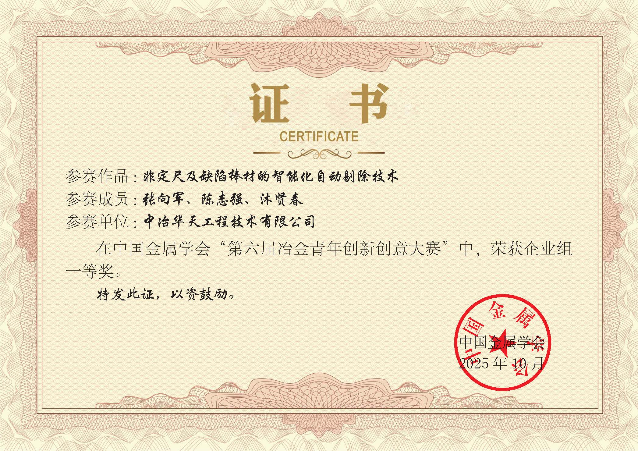 創(chuàng)新潮涌,捷報(bào)頻傳!10月27日,第六屆“冶金青年創(chuàng)新創(chuàng)意大賽”獲獎(jiǎng)名單正式揭曉。中冶華天鋼鐵院選送的兩項(xiàng)核心技術(shù)成果,憑借其顯著的創(chuàng)新性和應(yīng)用前景,從328個(gè)參賽項(xiàng)目中脫穎而出,分獲企業(yè)組一等獎(jiǎng)與二等獎(jiǎng),彰顯了中冶華天研發(fā)團(tuán)隊(duì)深厚的技術(shù)積淀與強(qiáng)大的創(chuàng)新活力,更展現(xiàn)了公司以科技創(chuàng)新驅(qū)動(dòng)鋼鐵工業(yè)綠色化、智能化轉(zhuǎn)型的堅(jiān)定決心與強(qiáng)大實(shí)力。